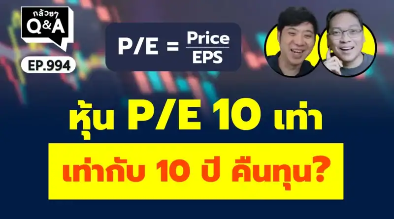 กล้วยๆ Q&A ถาม-ตอบ เรื่องหุ้นจากในคอร์สหุ้นมือใหม่ VI TURN PRO หุ้น P/E 10 เท่า = 10 ปี คืนทุน? (กล้วยๆ Q&A EP.994) October 5, 2025 ANTadmin หุ้น P/E 10 เท่า = 10 ปี คืนทุน? (กล้วยๆ Q&A EP.994)