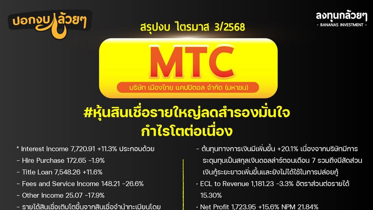 สรุปงบการเงิน และ Oppday หุ้น MTC ไตรมาส 3/2568