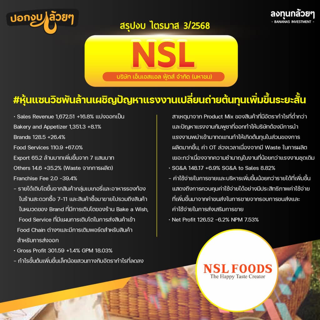 สรุปงบการเงิน และ Oppday หุ้น NSL ไตรมาส 3/2568