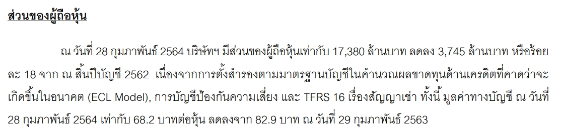 จะมีส่วนต่างอยู่ประมาณ 2670 ล้านบาท ส่วนนี้ไม่ได้หายไปไหนใช่ไหมคะ เพราะจ่ายปันผลใกล้เคียงกันทุกปี แต่ปี 2560-2563 ส่วนของผู้ถือหุ้นกลับเพิ่ม