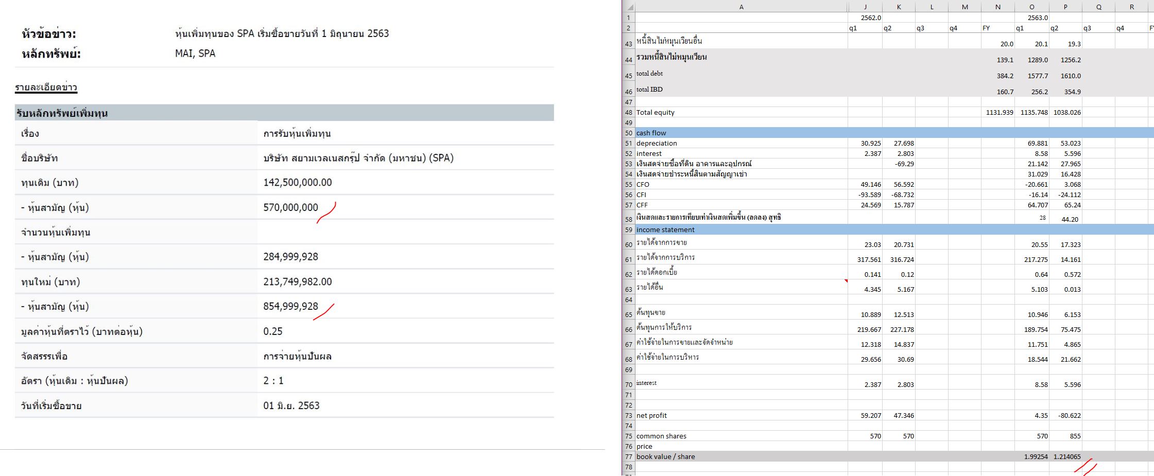 ส่วนตัวพี่คิดว่า สมเหตุสมผลนะครับ คือ MINT อนาคตในอีก 5 ปีข้างหน้า เต็มที่ก็ EPS กลับมาใกล้เคียงเดิม (เพราะเจอผลกระทบ 3 อย่าง คือ 1. covid effect 2. สภาพคล่องหายเรียบ แถมต้องกู้เงินเพิ่ม ทำให้แผนในอนาคตที่จะใช้เงินที่มีต้องเลื่อนออกไปหมด แถมยังมีภาระดอกเบี้ยเพิ่มขึ้นอีก 3. เพิ่มทุนอีก 10%) แต่ในขณะที่ SPA พี่คิดว่ามีกลยุทธ์ในการประคองตัวที่ดีเหมือนกัน แล้วก็น่าจะ bleed น้อยกว่า mint นะครับ เมื่อเทียบอัตราส่วนนะ