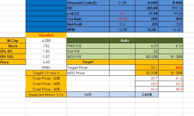 ลองทำ Template - TACC มีข้อสงสัยว่า ทำไม P/E MOS น้อยกว่าของอาจารย์มากเลยครับ ผมคำนวน EPS. = กำไร / จำนวนหุ้น = 1.5 แล้วเทียบดูใน Set อยู่ที่แค่ประมาณ ไม่เกิน 1 ไม่เกินนี้ เลยสงสัยว่า ผมคำนวนขั้นตอนไหนผิดไปหรือป่าวครับ และ FWD ที่ผมคำนวนได้แค่ 4.1