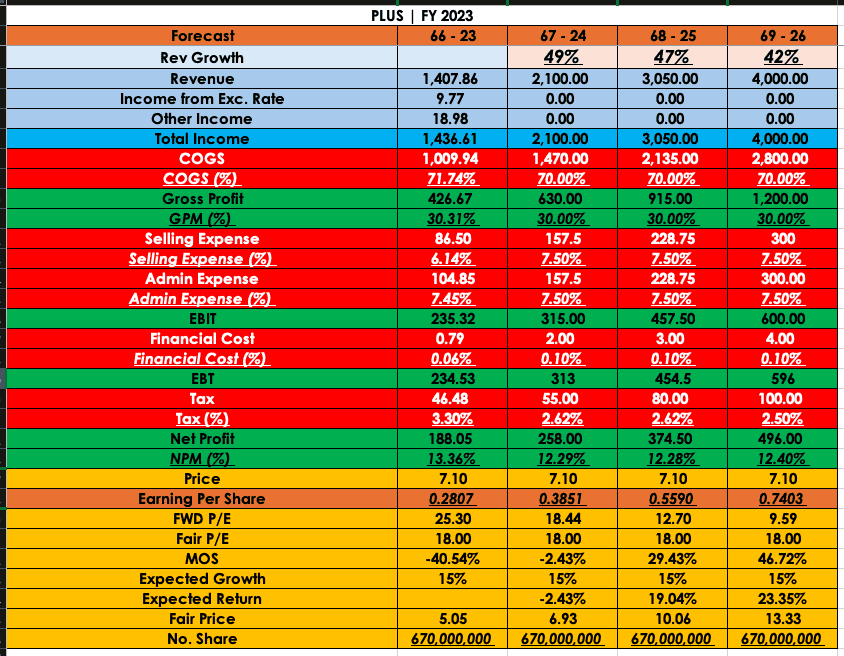 สอบถามเรื่อง P/E ของ Plus หน่อยครับ สงสัยว่าทำไมตลาดให้ P/E ประมาณ 18 เท่า (Project EPS ปี 24 = 0.40) ทั้งๆที่ PLUS ตั้งเป้าเติบโต 40-50% ครับ