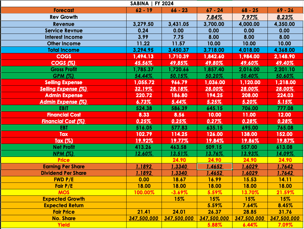 @prapas-b88 เผอิญแอบเห็นไฟล์ Valuation ของพี่ประพาส เหนได้ MOS เยอะมาก ผมเลยคิดว่าจะมานั่งรีวิวที่ผมทำใหม่ ผมคิดว่ายังทำการบ้าน และหาข้อมูลได้ไม่เพียงพอ โดยสำหรับ SG&A ที่พี่ Comment มา จริงๆแล้ว แอบคิดได้ว่าน่าจะต้อง Breakdown มาว่าอันไหน Fix & Variable Cost รวมถึง COGS ด้วย ดังนั้นเดี๋ยวจะลองทำการบ้านใหม่นะครับ แล้วมานำเสนออีกทีนะครับ