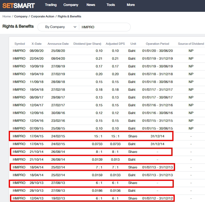 ตรงข้อมูล Dividend per share ที่เราดูจาก Setsmart จะมีหุ้นหลายตัว ที่ระบุเป็นตัวเลข เช่น 6:1 ถ้าระบุแบบนี้หมายถึงอะไรคะ แล้วต้องเอามาคำนวณเป็นผลตอบแทนมั้ยคะ