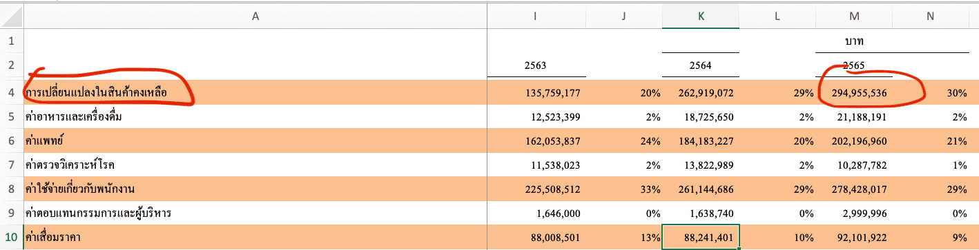 มันเยอะมากเลยครับ แต่พอไปดู "สินค้าคงเหลือ" อยู่แค่ 20 กว่าล้าน เท่านั้น