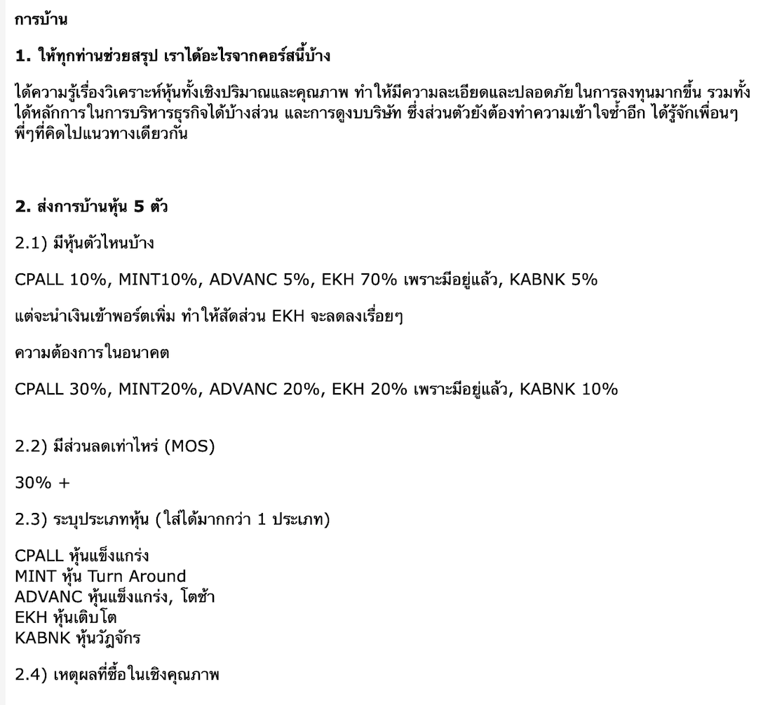ข้อที่ 2 รายละเอียดของส่งการบ้าน ส่งการบ้านหุ้น 5 ตัว