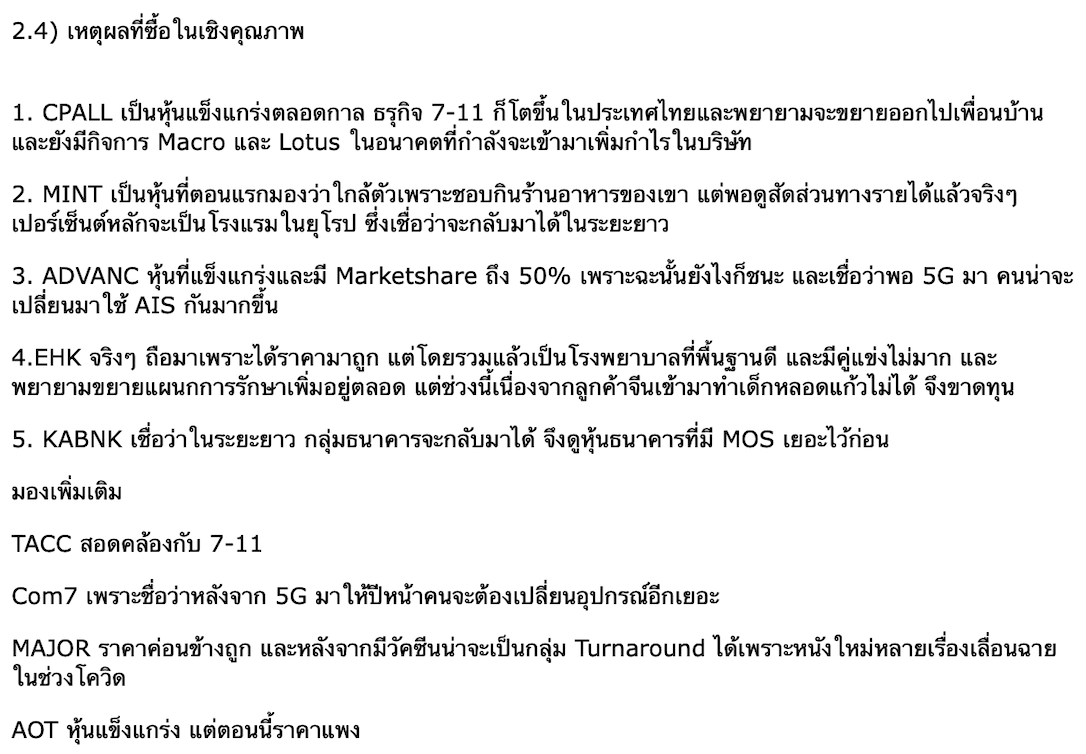 2.1)มีหุ้นตัวไหนบ้างสัดส่วน