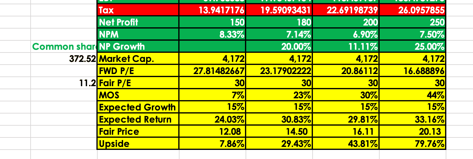 PV = ราคาปัจจุบัน หรือ FWD P/E ก็ได้