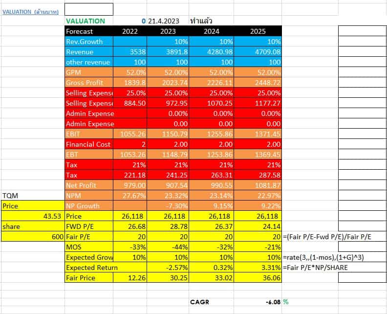 อจ.ค่ะ พี่ได้UP DATE งบ Q4ปี222 แล้วทำตารางVALUATION ของหุ้น TQM ที่ราคาตกมากๆ รบกวน ช่วยดูให้หน่อยค่ะ ว่าพอจะใช้ได้ไหม