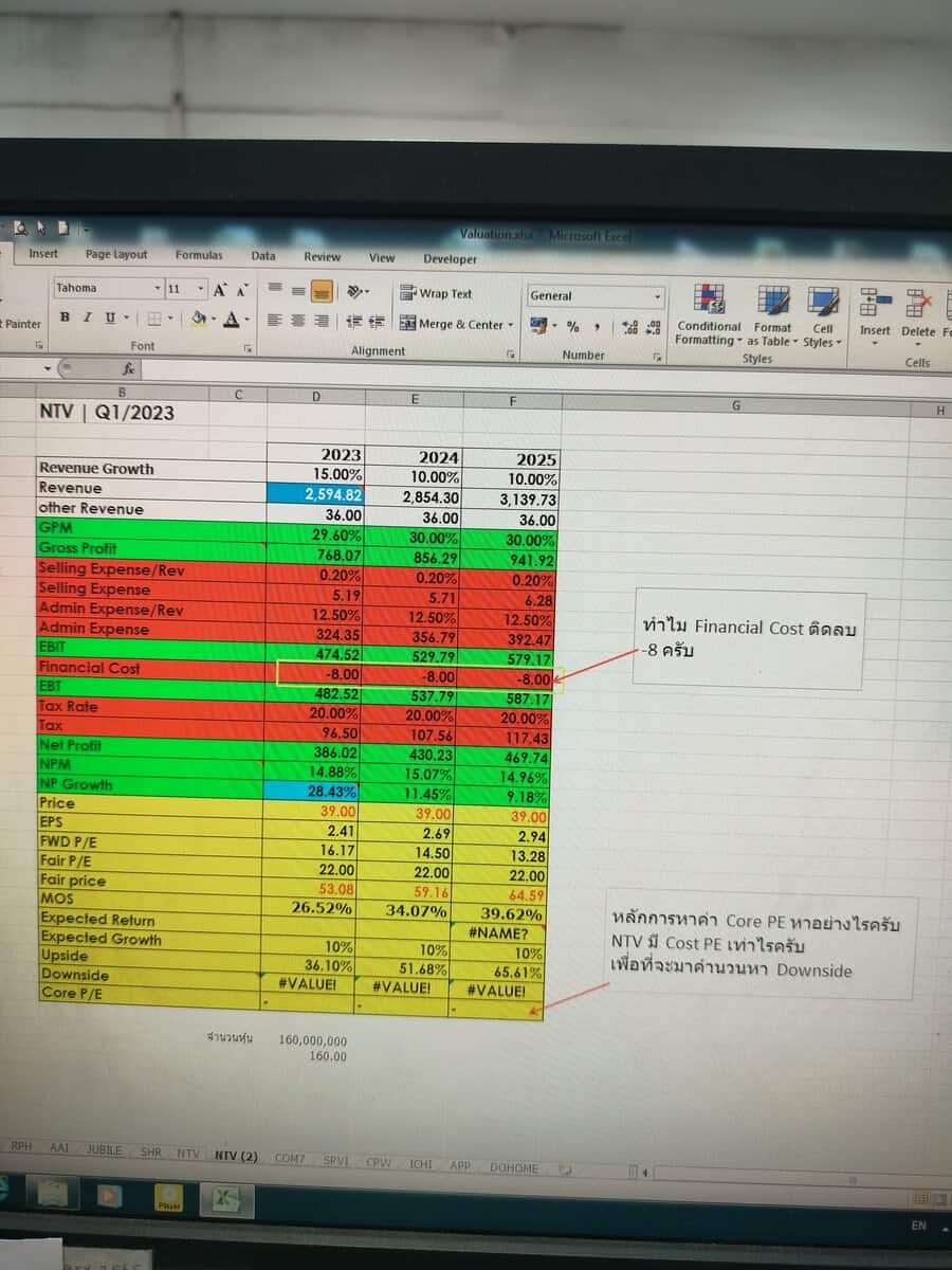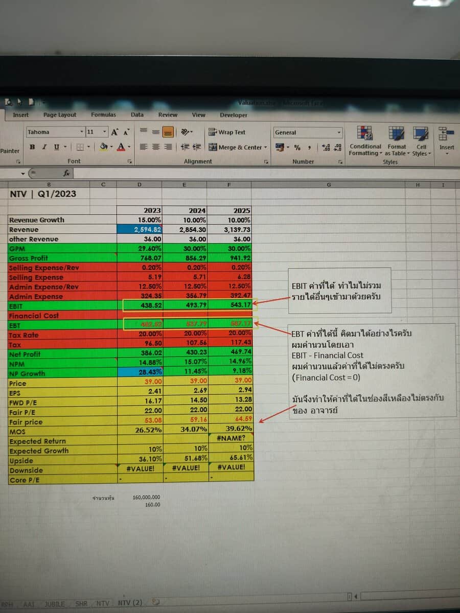 2. EBT ที่ไม่ตรงกันเพราะ ผมมีรวมรายได้อื่นเข้าไปแล้ว และ F/N Cost ไม่ได้เท่ากับ 0 ครับ แต่เป็น -8 ล้านครับ ผมใส่สูตรไว้ทั้งชีทว่าถ้าตัวเลขติดลบให้ใส่สีแดง ซึ่งสีเดียวกันกับสีพื้นหลังมันเลยกลืนกันครับ ต้องขอโทษด้วย