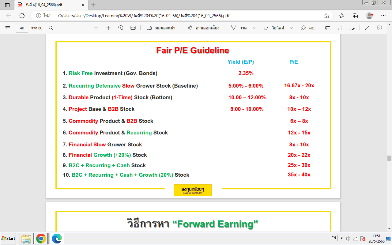 Fair P/E = Core P/E + Growth = Premium P/E ครับ