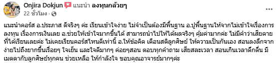 มีความคาดหวังสูง!! ต่อผู้ที่จะมาลงคอร์ส ให้ได้รับความเข้าใจ และมีสุขภาพพอร์ตที่ดีขึ้น ได้ผลตอบแทนที่ดีขึ้น